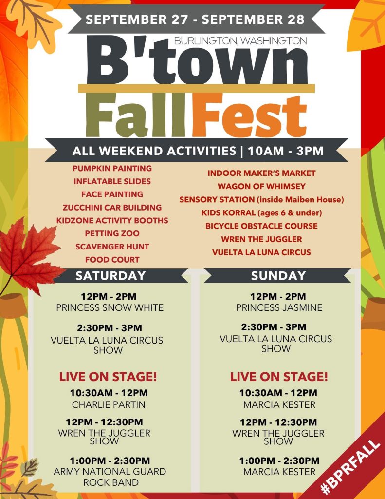 - 10am – 3pm both days Located at Maiben Park 1011 Greenleaf Ave Burlington WA 98233
